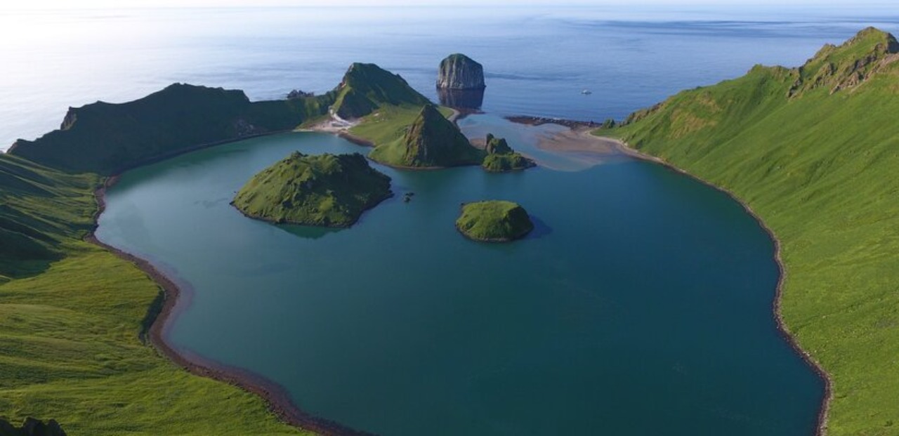О. Симушир (2 локации: кальдера вулкана Заварицкого и бухта Броутона